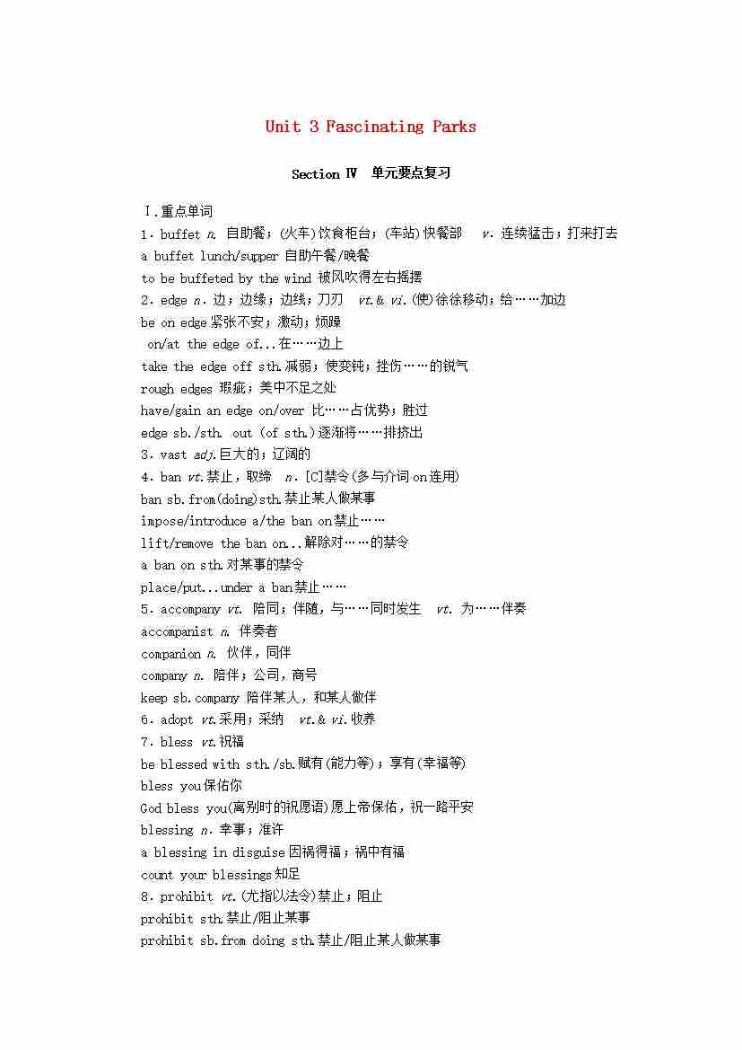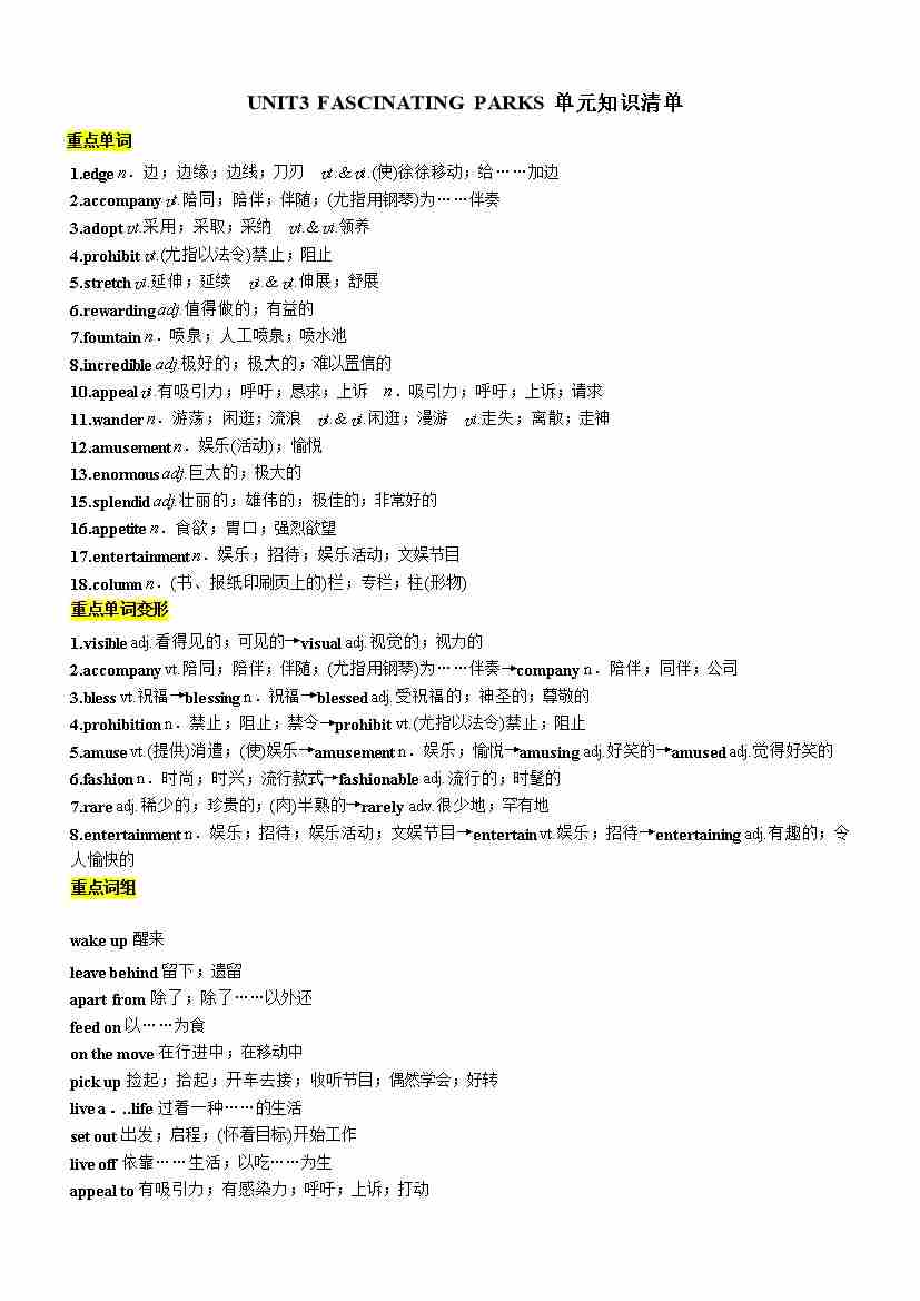 UNIT3 FASCINATING PARKS(单元知识清单)-(人教版2019选择性必修第一册)