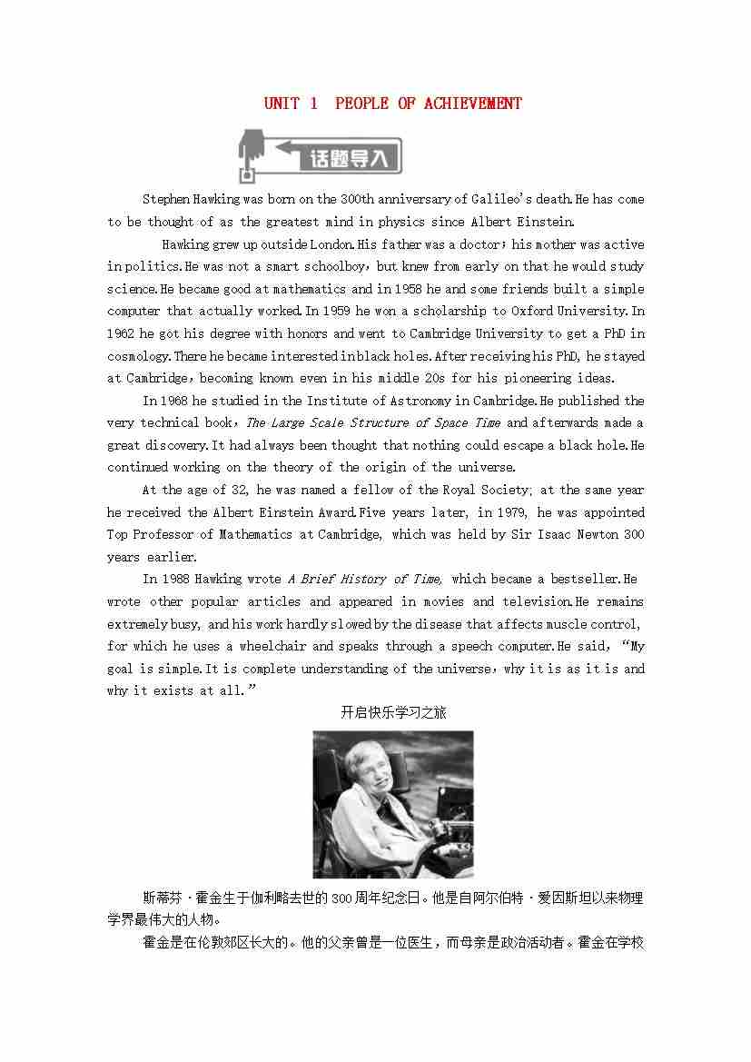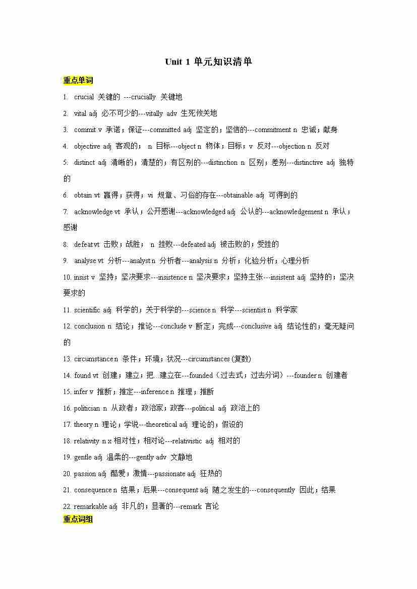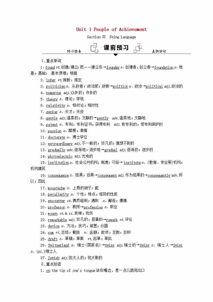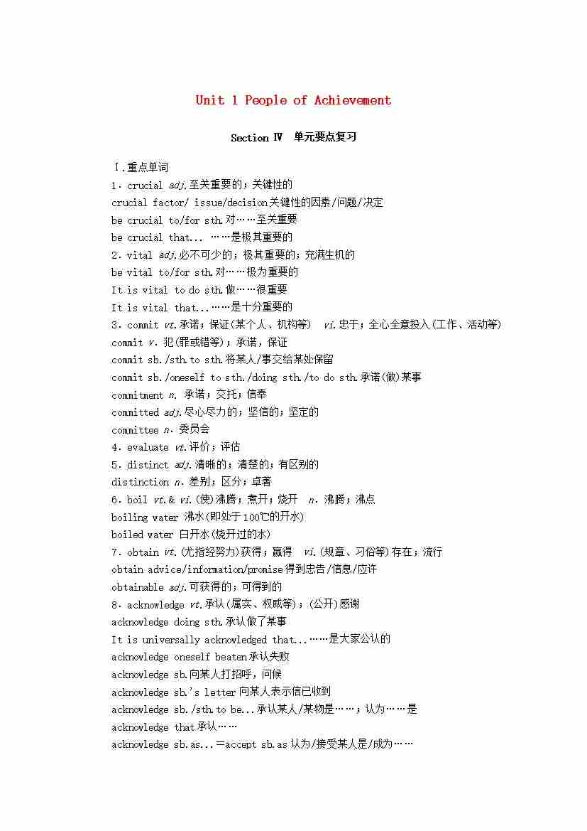 Unit 1 PEOPLE OF ACHIEVEMENT(单元知识清单)-(人教版2019选择性必修第一册)