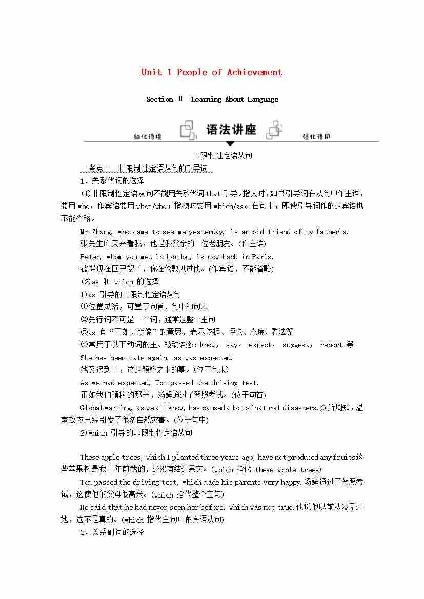 新教材高中英语Unit1PeopleofAchievementSectionⅡLearningAboutLanguage含解析新人教版选择性必修第一册