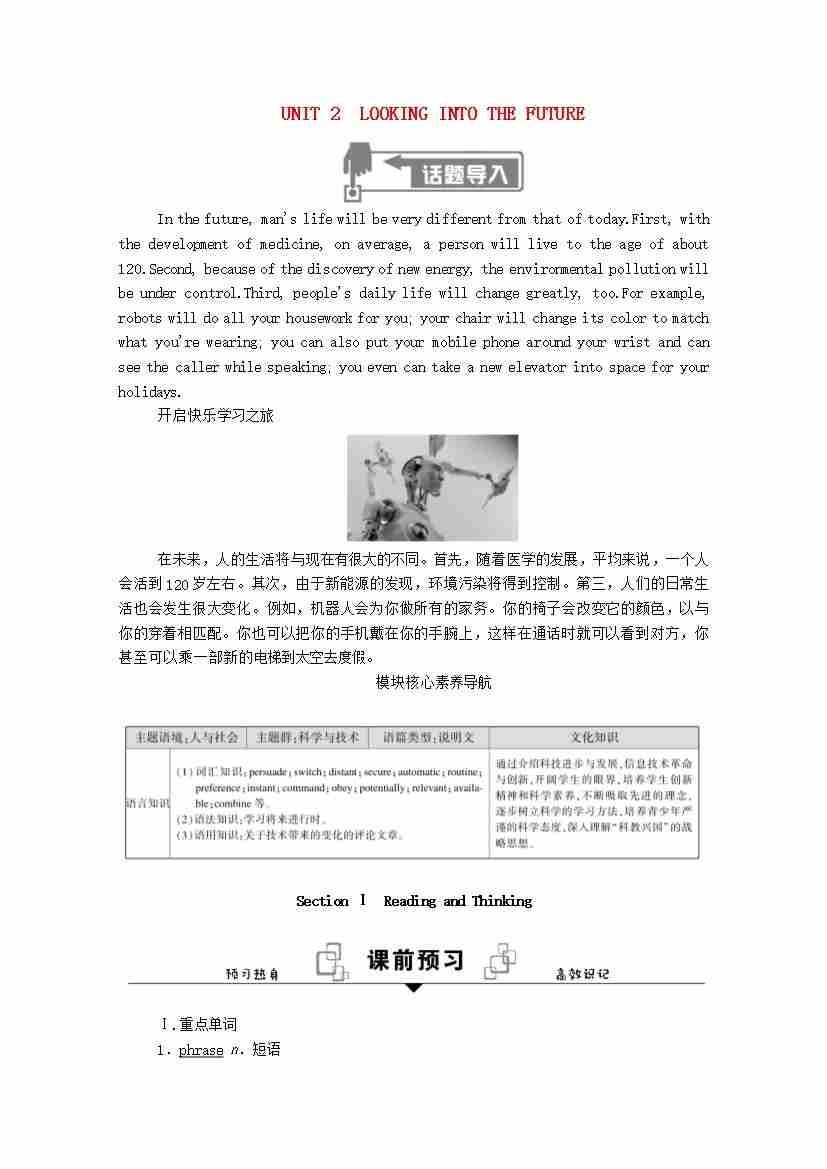 新教材高中英语Unit2LookingintotheFutureSectionⅠReadingandThinking含解析新人教版选择性必修第一册