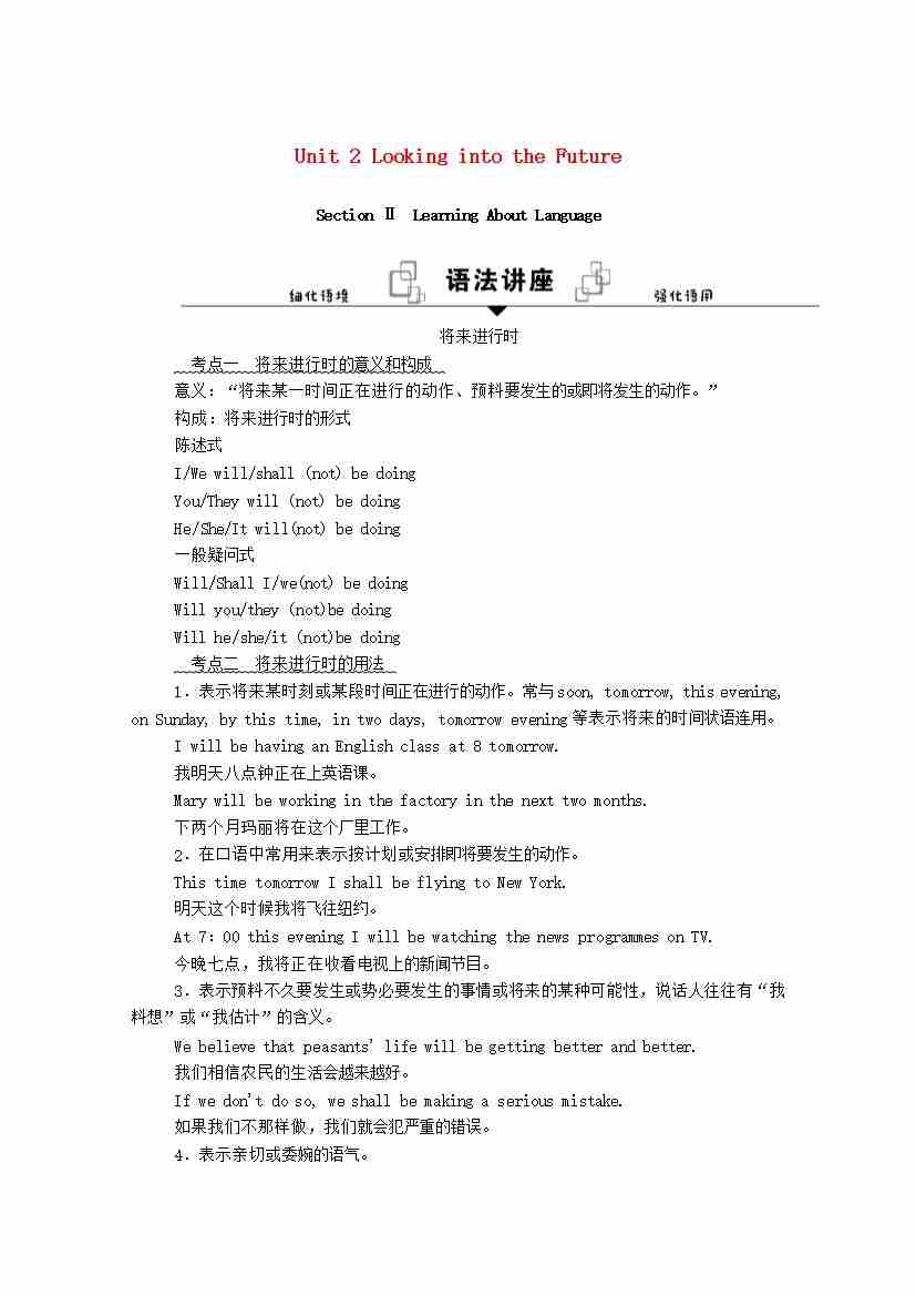 新教材高中英语Unit2LookingintotheFutureSectionⅡLearningAboutLanguage含解析新人教版选择性必修第一册