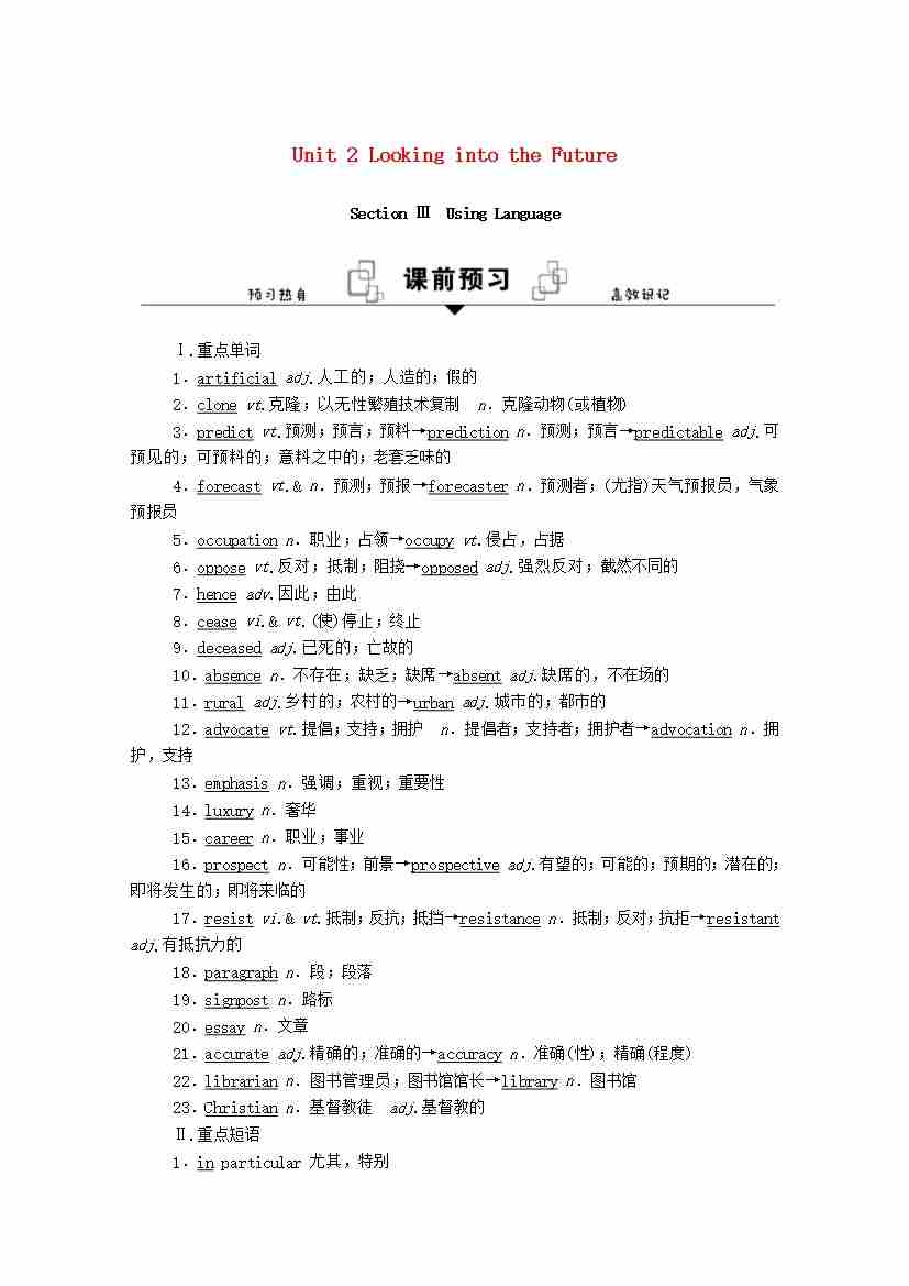 新教材高中英语Unit2LookingintotheFutureSectionⅢUsingLanguage含解析新人教版选择性必修第一册