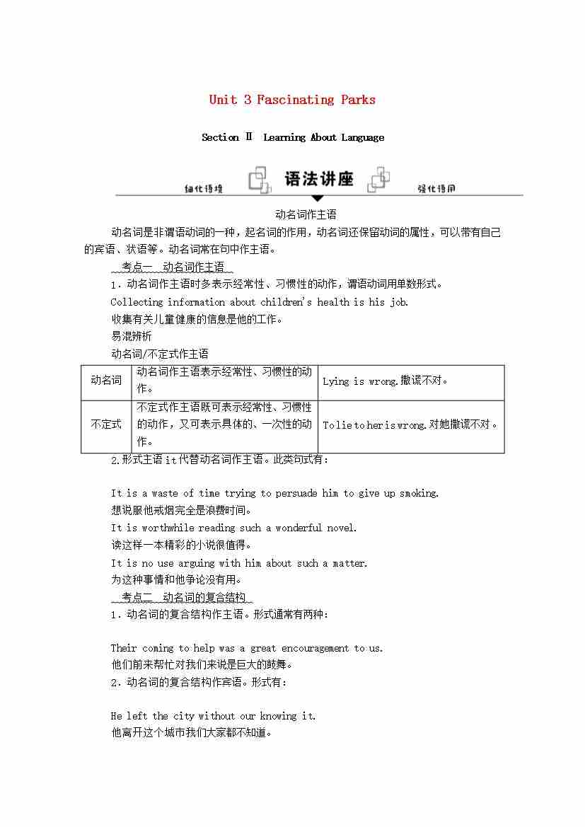 新教材高中英语Unit3FascinatingParksSectionⅡLearningAboutLanguage含解析新人教版选择性必修第一册