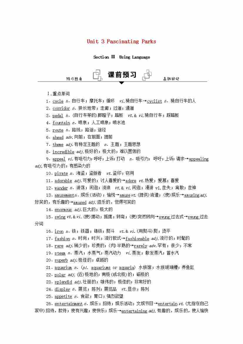 新教材高中英语Unit3FascinatingParksSectionⅢUsingLanguage含解析新人教版选择性必修第一册