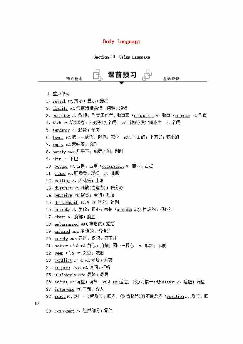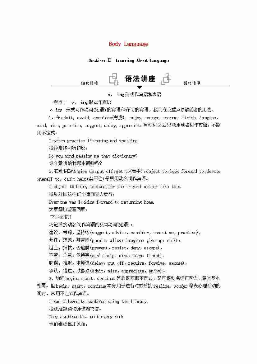 新教材高中英语Unit4BodyLanguageSectionⅡLearningAboutLanguage含解析新人教版选择性必修第一册