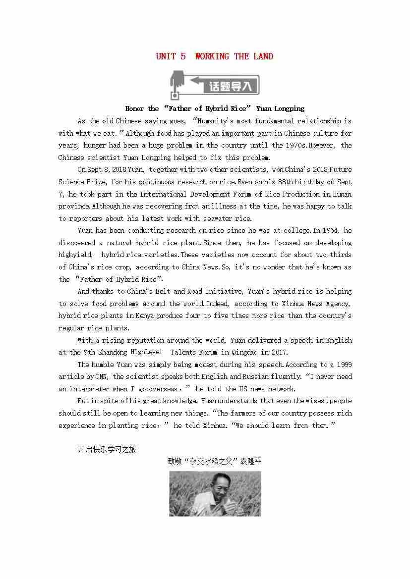 新教材高中英语Unit5WorkingtheLandSectionⅠReadingandThinking含解析新人教版选择性必修第一册