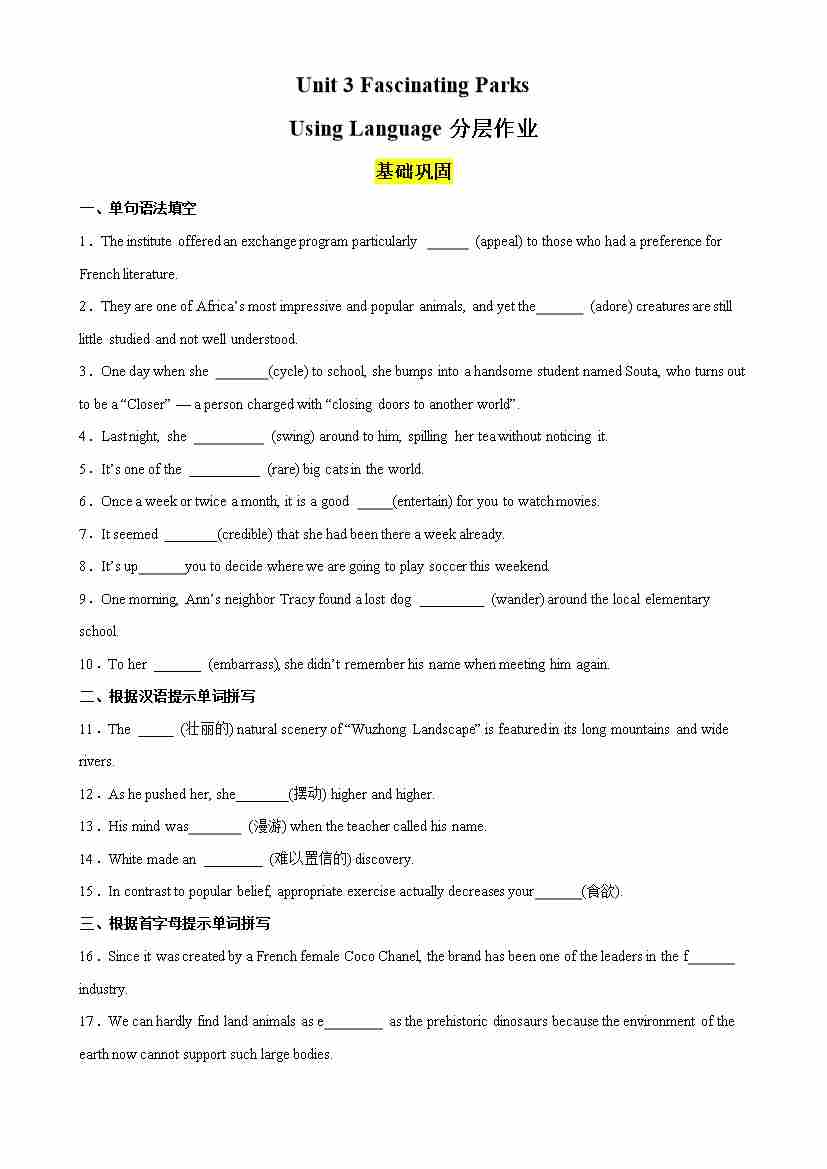 Unit 3 Fascinating Parks Using Language分层作业(解析版)