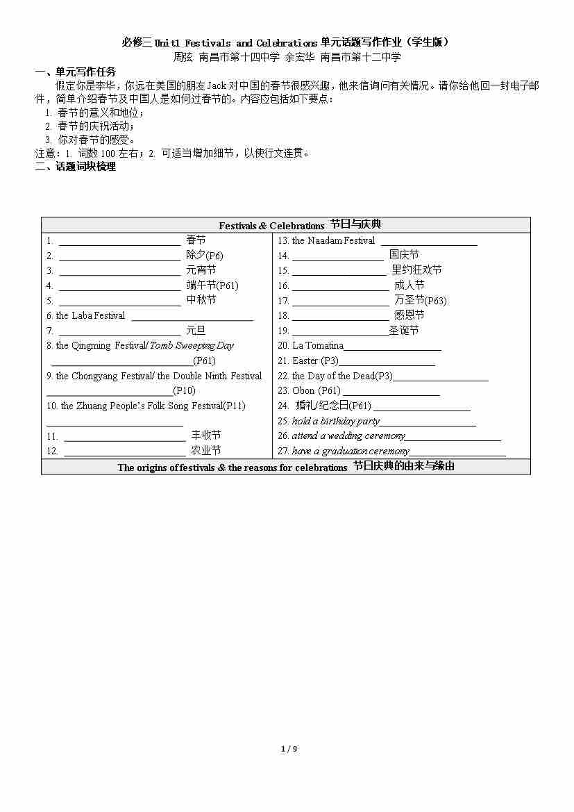 Unit 1 Festivals and Celebrations(A卷基础卷)(原卷版)(1)