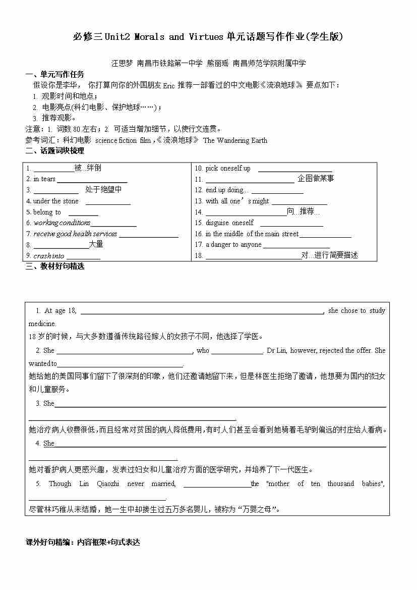 必修三Unit2 Morals and Virtues单元话题写作作业(学生版)