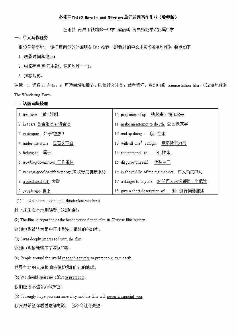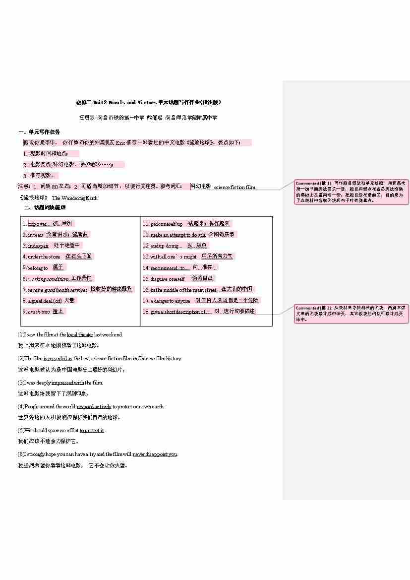 必修三Unit2 Morals and Virtues单元话题写作作业(批注版)