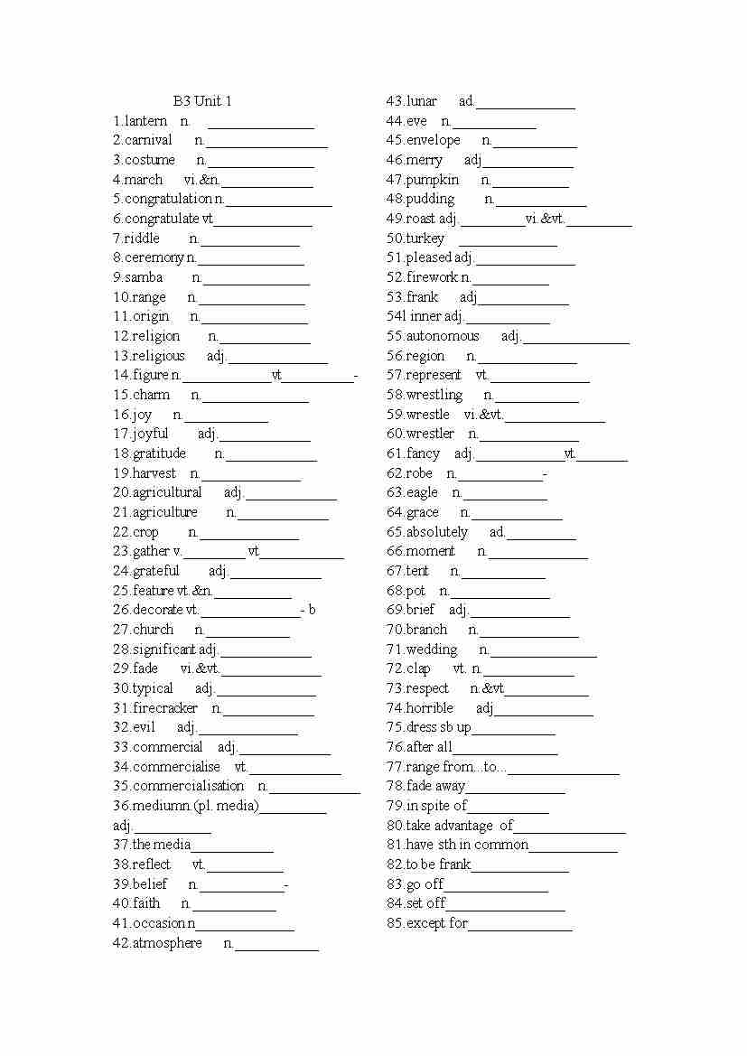 B3 Unit 1英汉互译