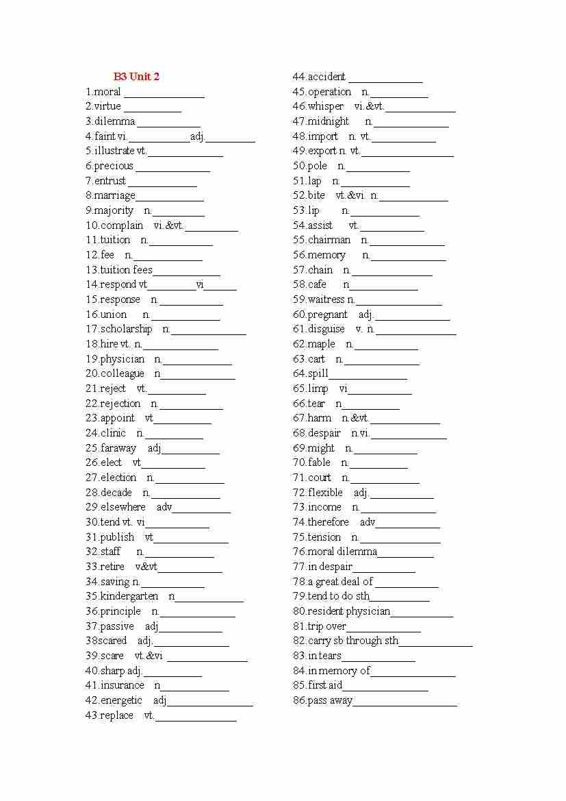 B3Unit 2英汉互译