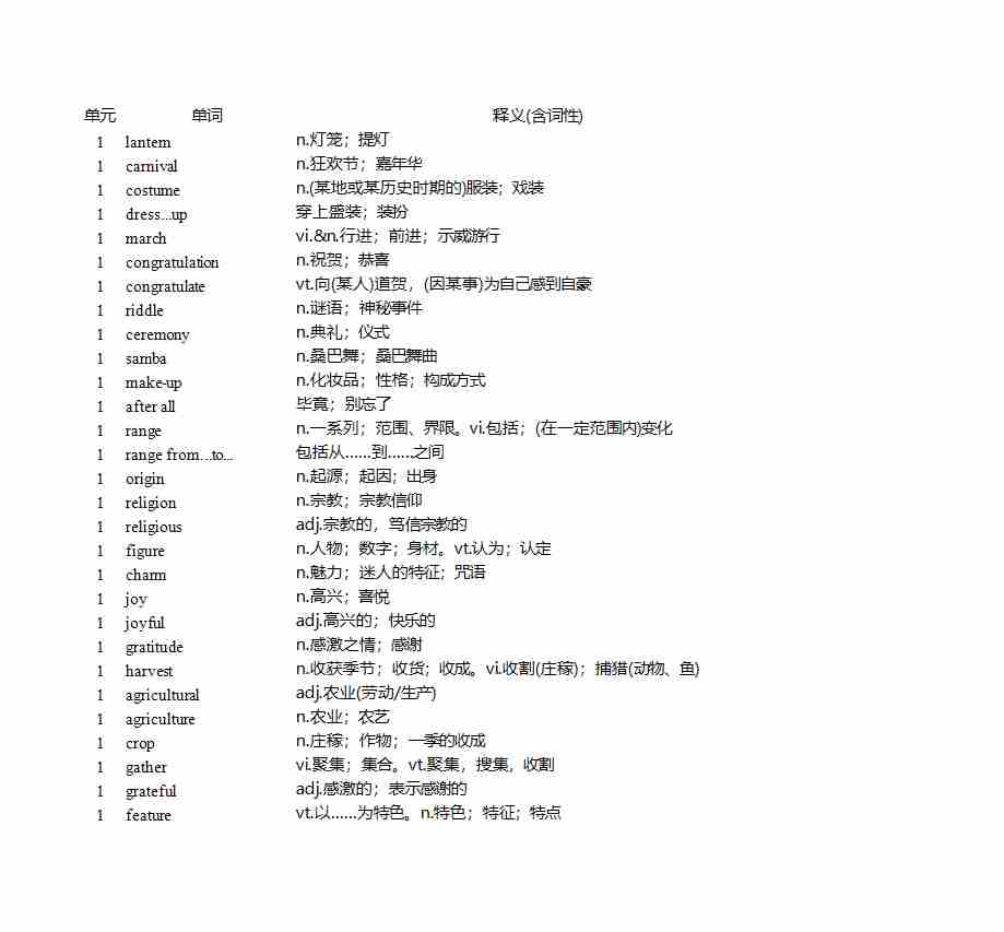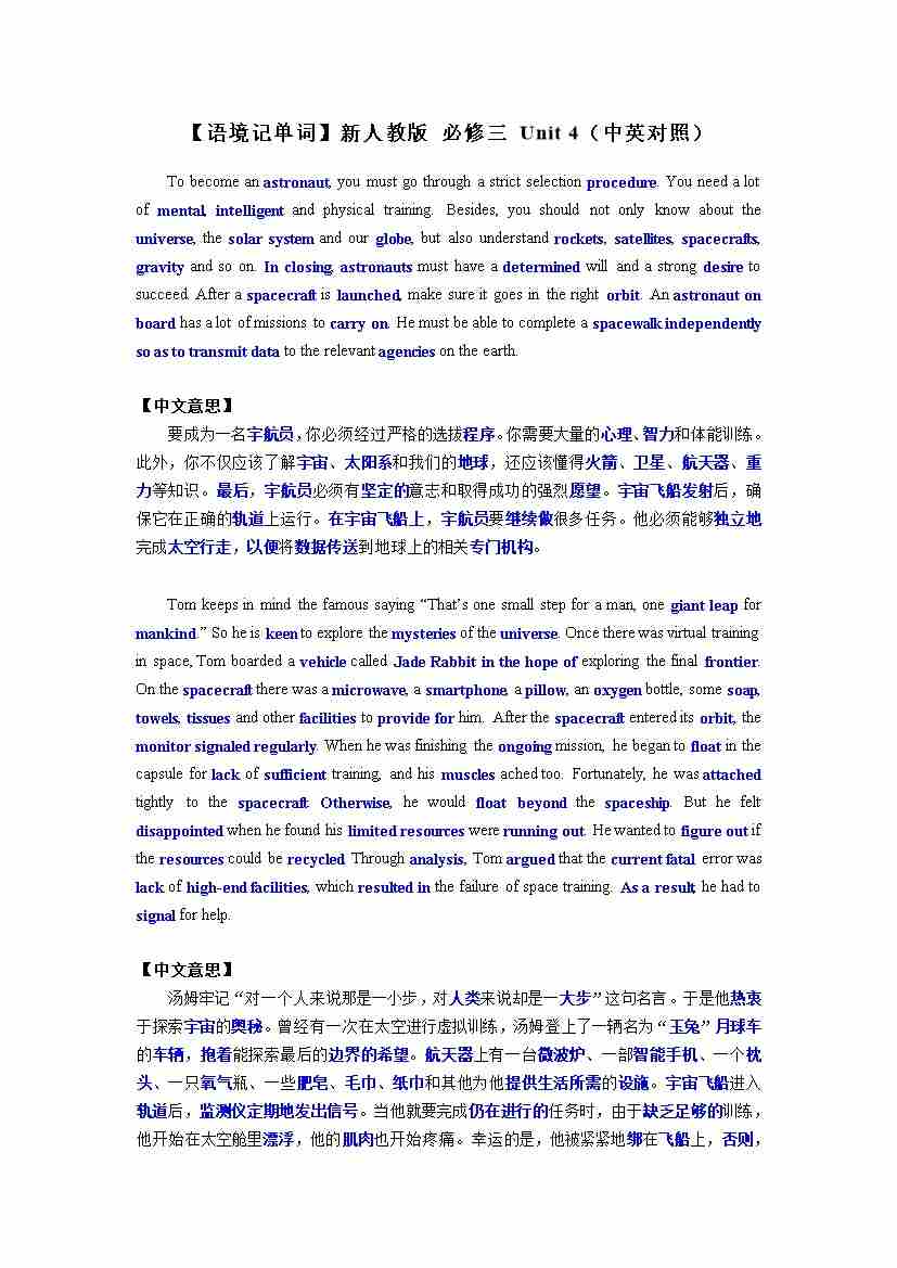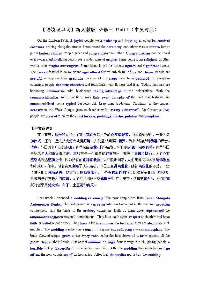 【语境记单词】新人教版 必修三 Unit 1(中英对照)