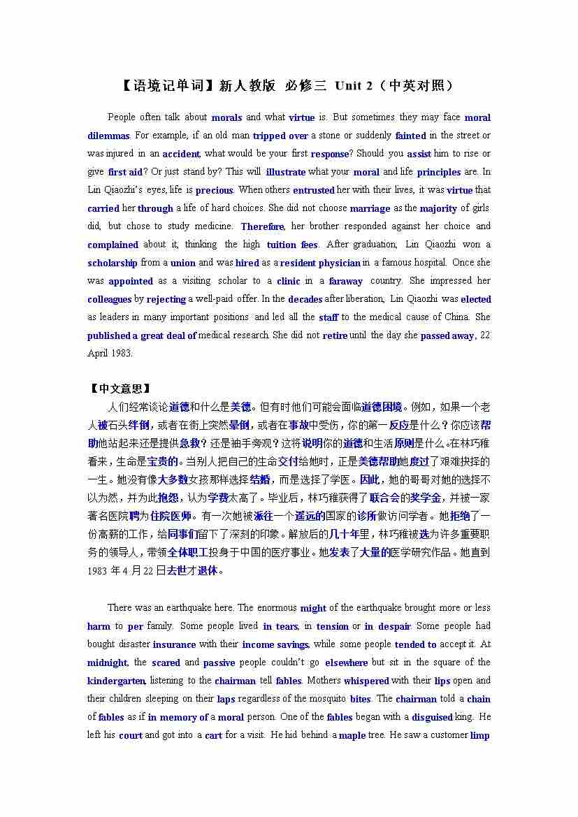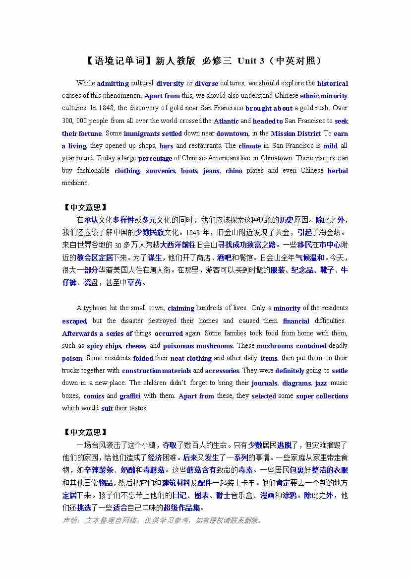 【语境记单词】新人教版 必修三 Unit 2(中英对照)
