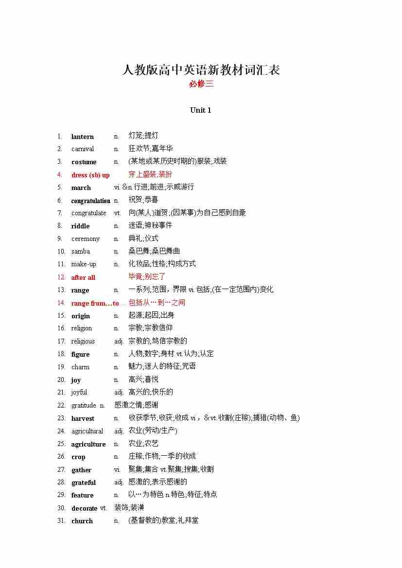 新人教版高中英语词汇表(必修3)(_word 打印版)