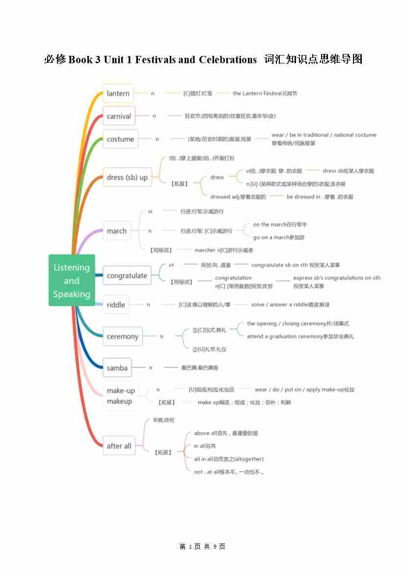 Unit 1 Festivals and Celebrations 词汇知识点思维导图-