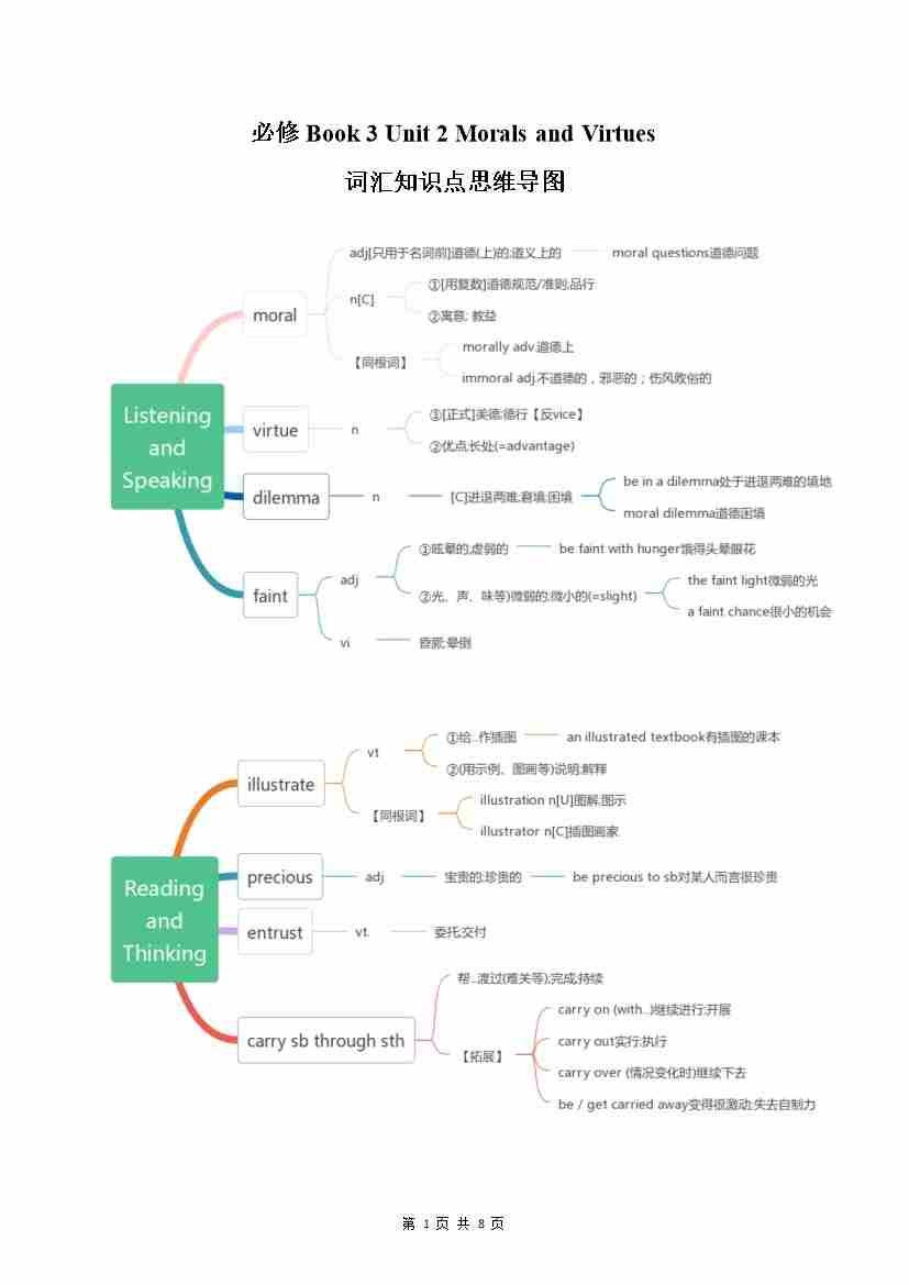 Unit 2 Morals and Virtues 词汇知识点思维导图-