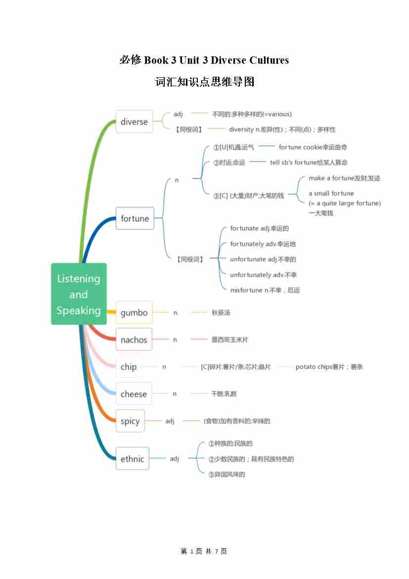 Unit 3 Diverse Cultures 词汇知识点思维导图-