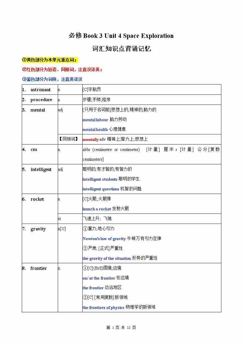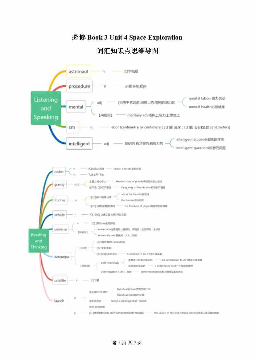 Unit 4 Space Exploration 词汇知识点背诵记忆