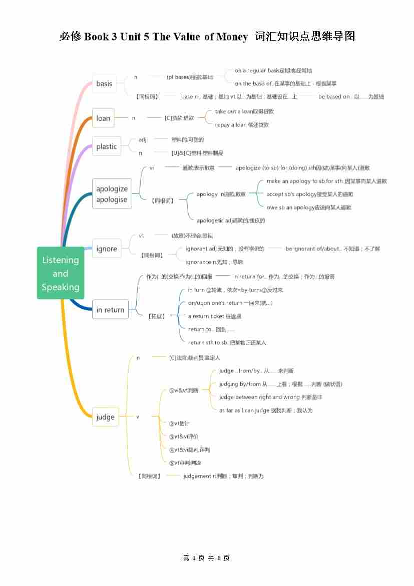 Unit 5 The Value of Money 词汇知识点思维导图-