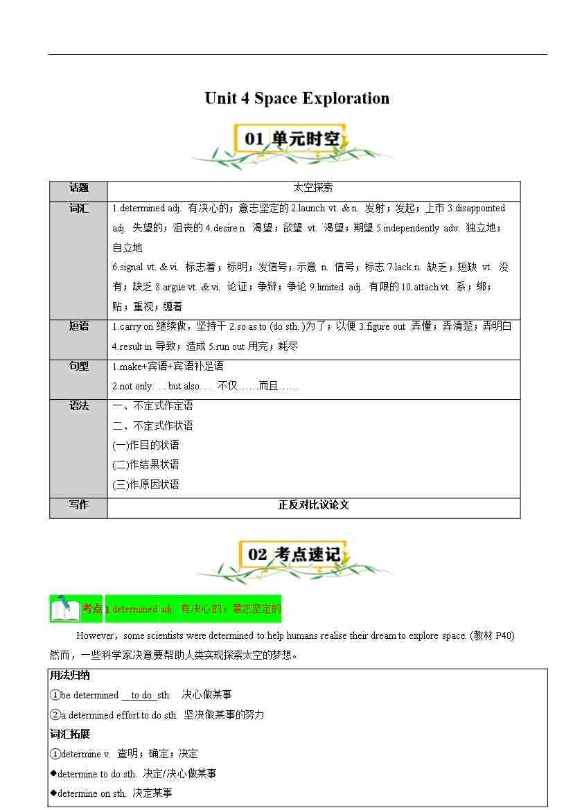 Unit 4 Space Exploration【速记清单】(解析版)