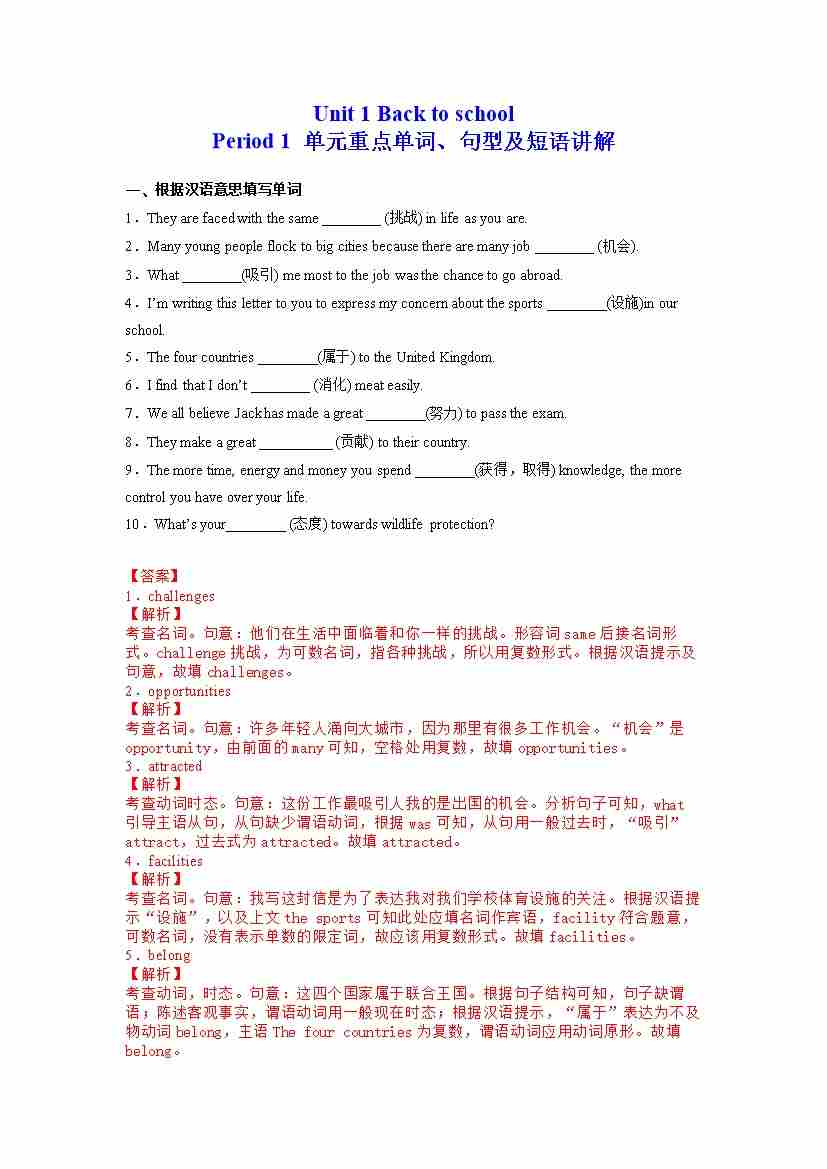 Unit 1 Back to school Period 1 单元重点单词、句型及短语讲解(分层练习)(解析版)---(译林版2020必修第一册)