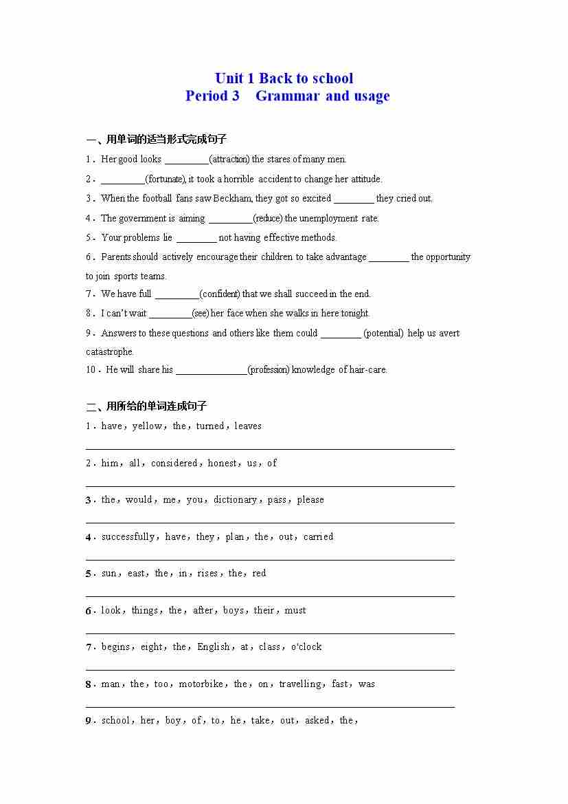 Unit 1 Back to school Period 3 Grammar and usage(分层练习)(原卷版)---(译林版2020必修第一册)