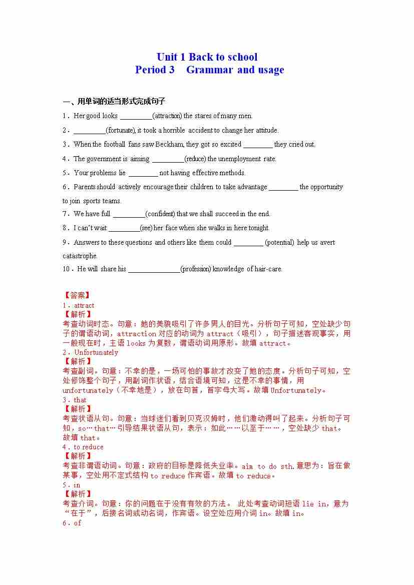 Unit 1 Back to school Period 3 Grammar and usage(分层练习)(解析版)---(译林版2020必修第一册)