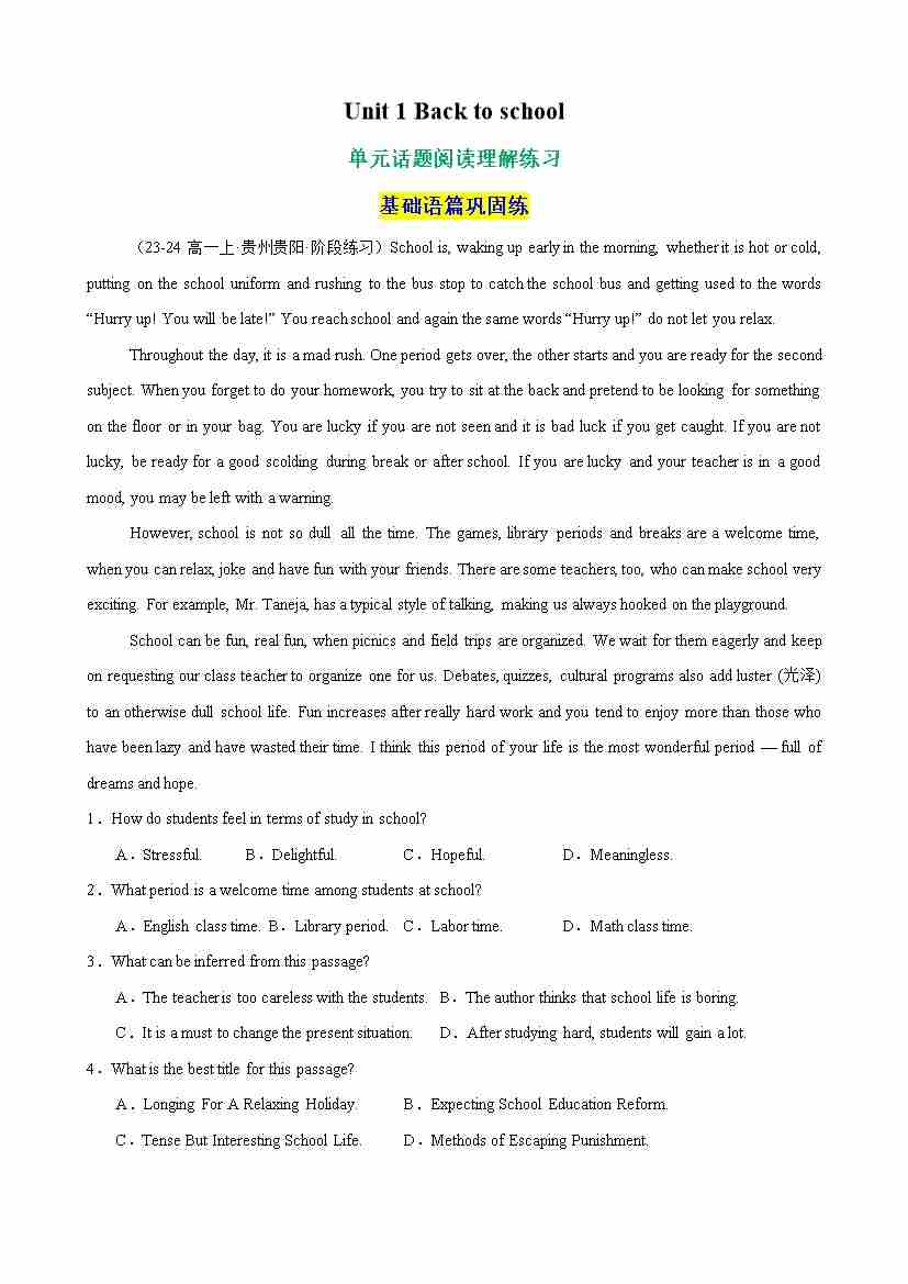 Unit 1 Back to school 单元话题阅读理解练习(学生版)
