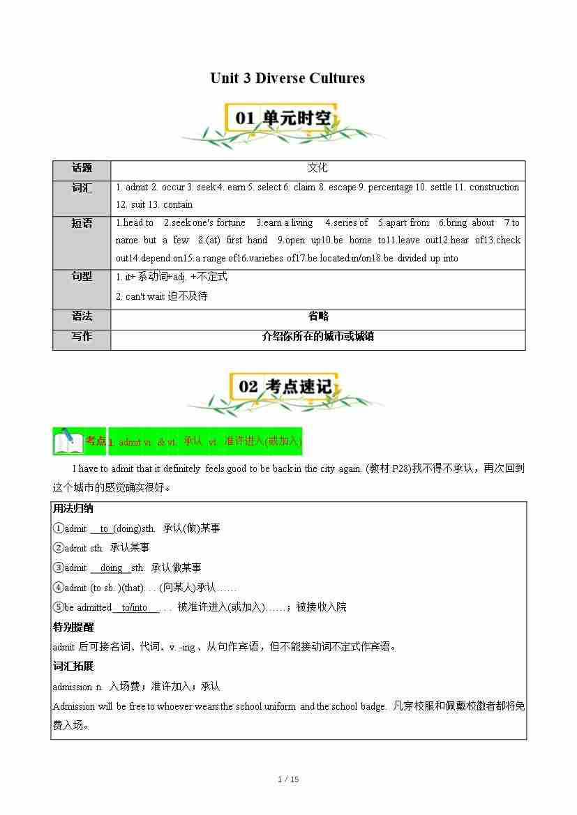 Unit 3 Diverse Cultures【速记清单】(解析版)