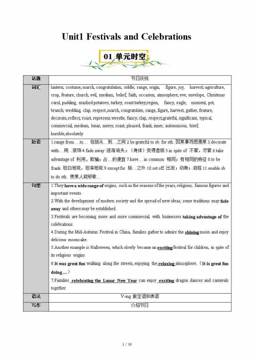 Unit1 Festivals and Celebrations【速记清单】(解析版)