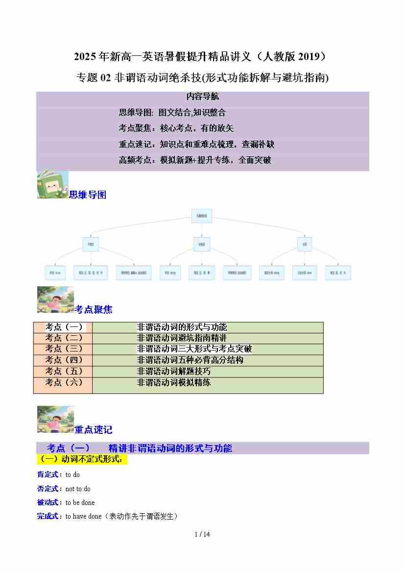 专题02非谓语动词绝杀技(形式功能拆解与避坑指南)-【暑假自学课】2025年新高一英语暑假提升精品讲义(人教版2019)-解析版