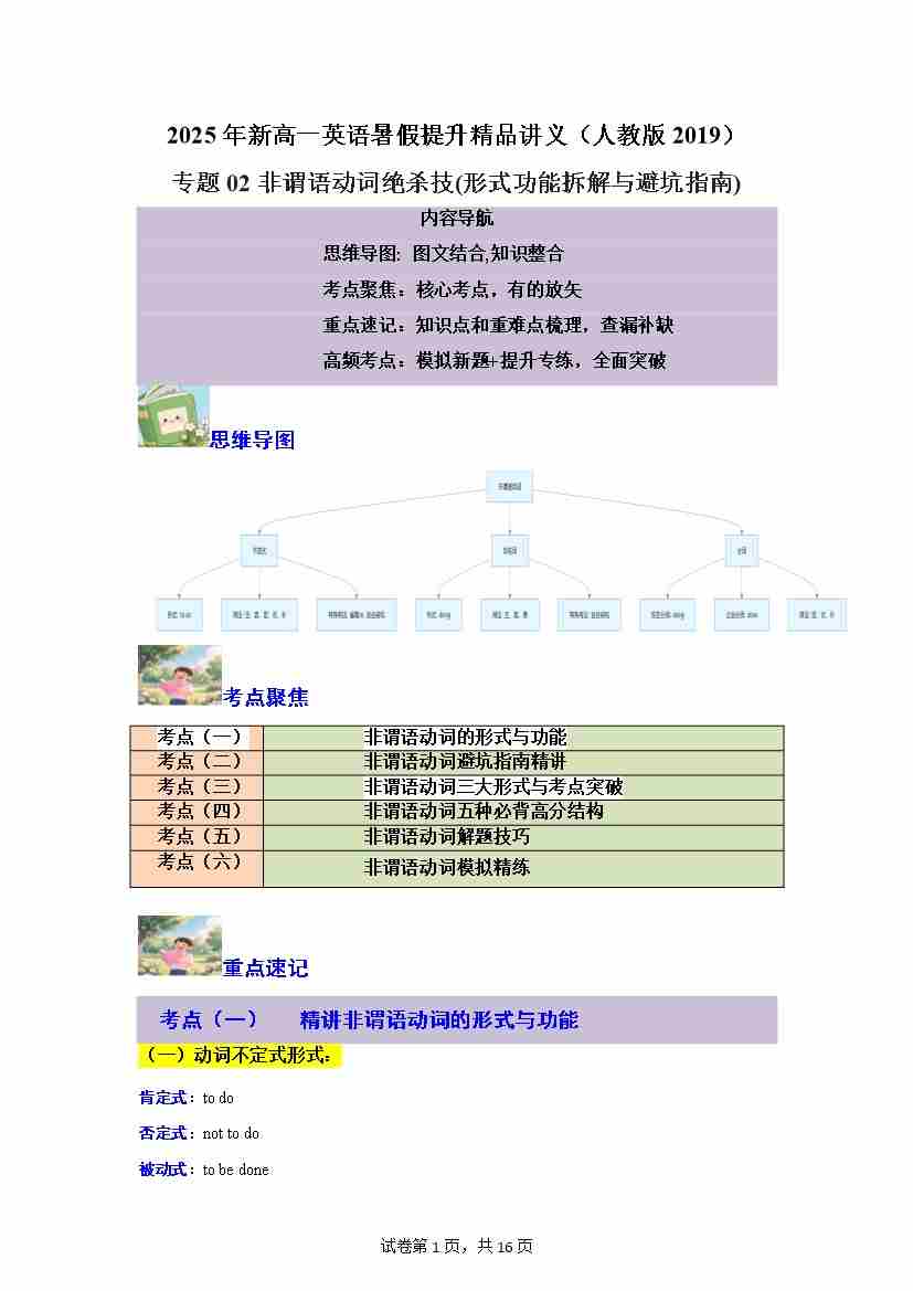 专题02非谓语动词绝杀技(形式功能拆解与避坑指南)-【暑假自学课】2025年新高一英语暑假提升精品讲义(人教版2019)-原卷版