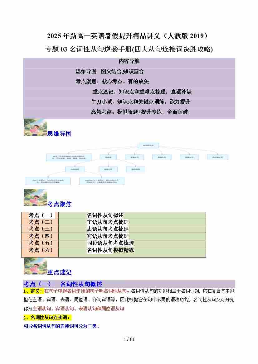 专题03名词性从句逆袭手册(四大从句连接词决胜攻略)-【暑假自学课】2025年新高一英语暑假提升精品讲义(人教版2019)-原卷版