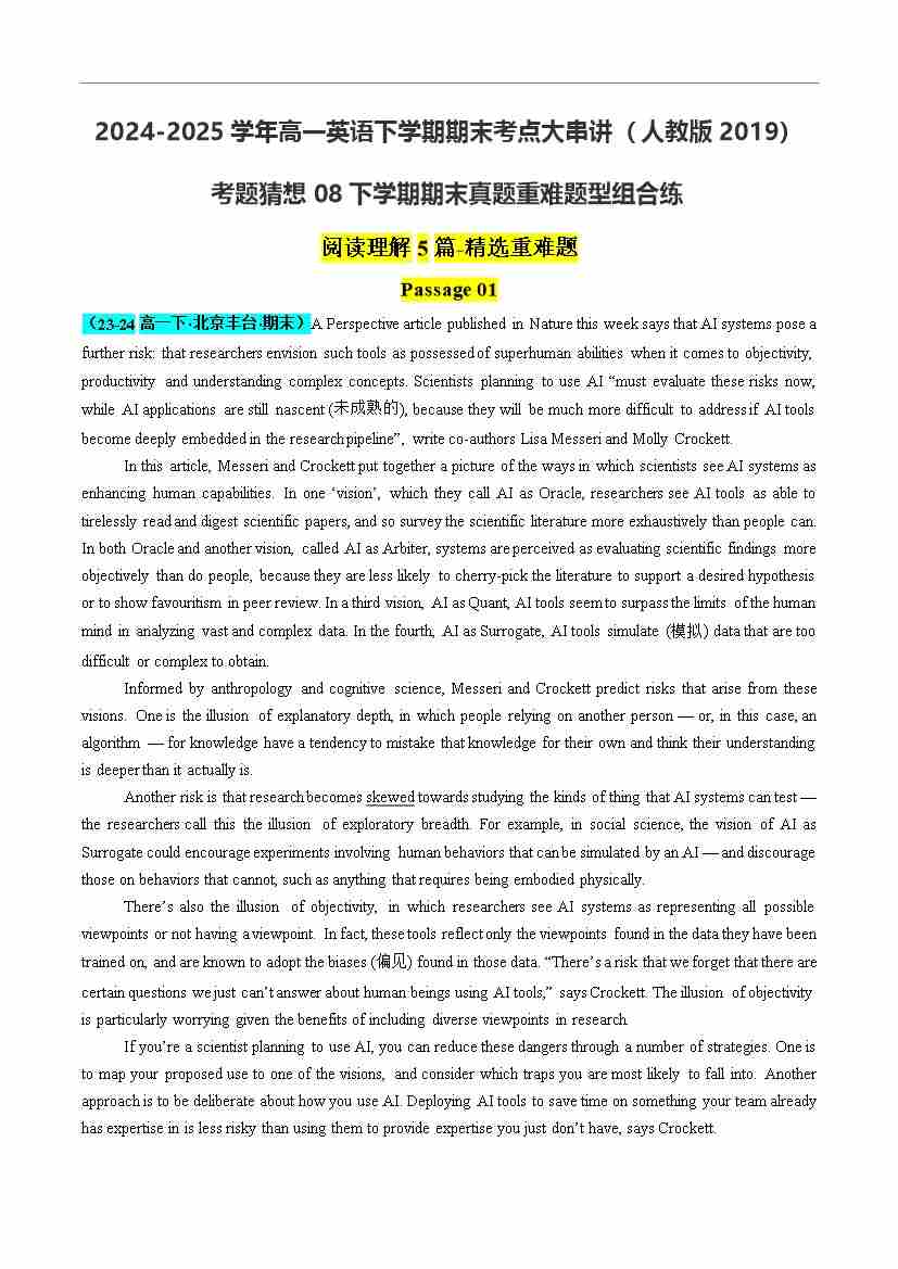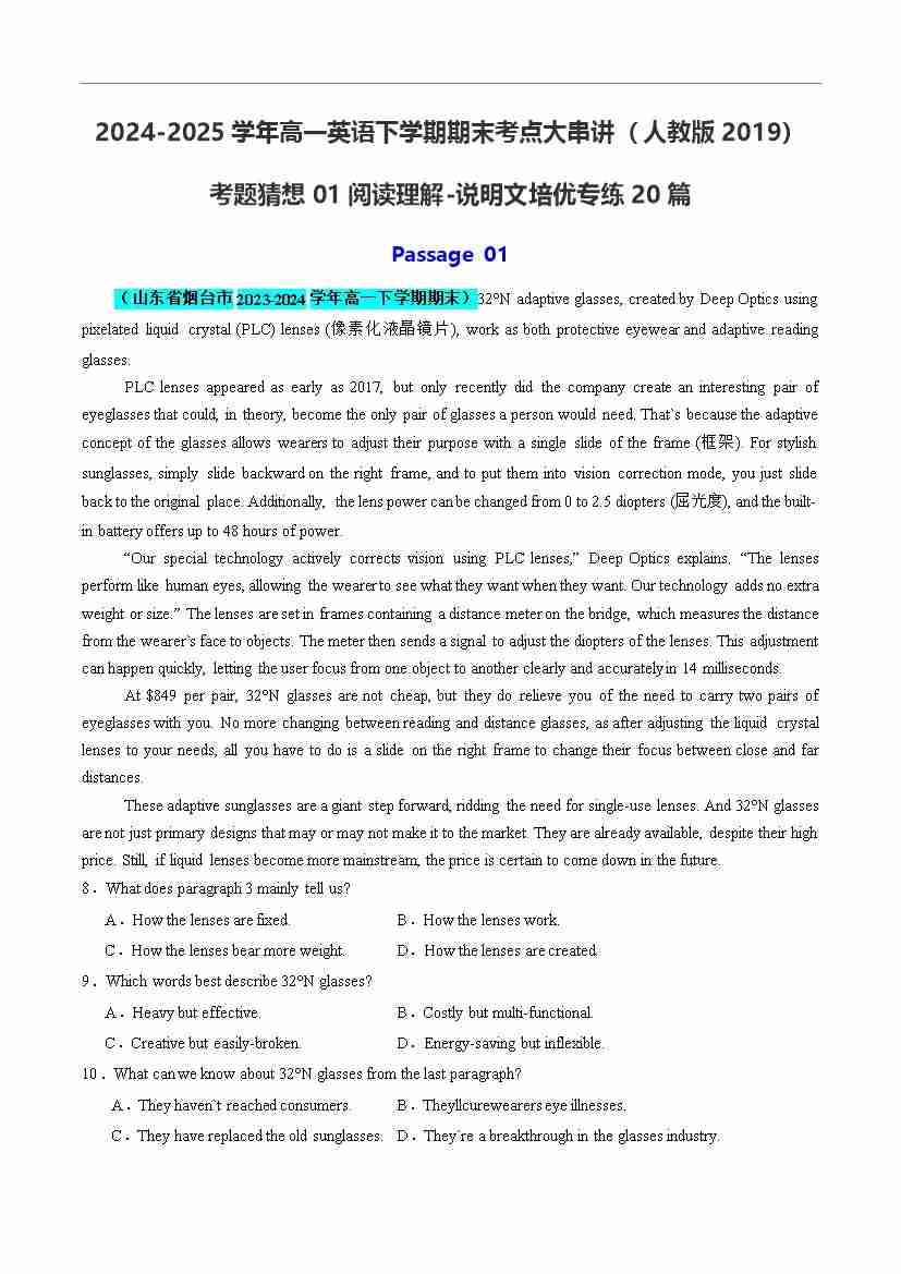 考题猜想01阅读理解-说明文培优专练20篇(考题猜想)-原卷版