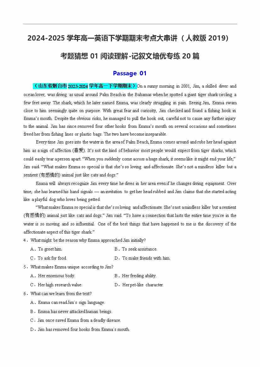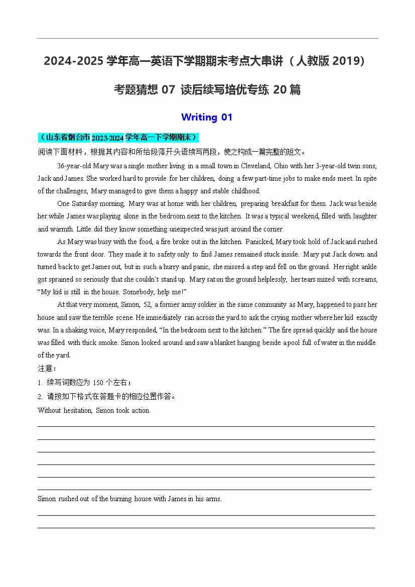考题猜想07 读后续写培优专练20篇(考题猜想)-原卷版