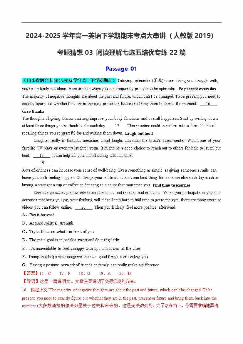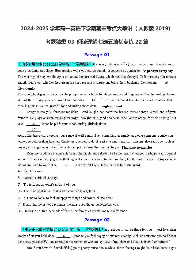 考题猜想03 阅读七选五培优专练22篇(考题猜想)-解析版