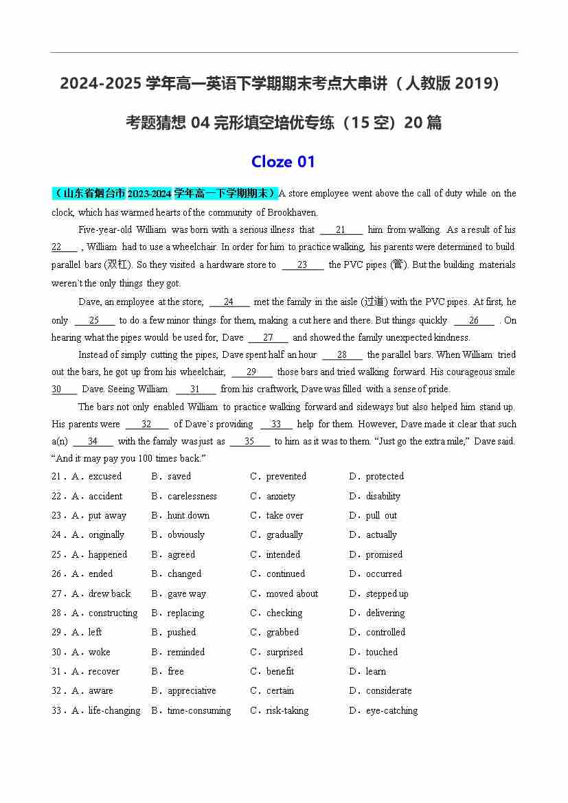 考题猜想04完形填空培优专练(15空)20篇(考题猜想)-解析版