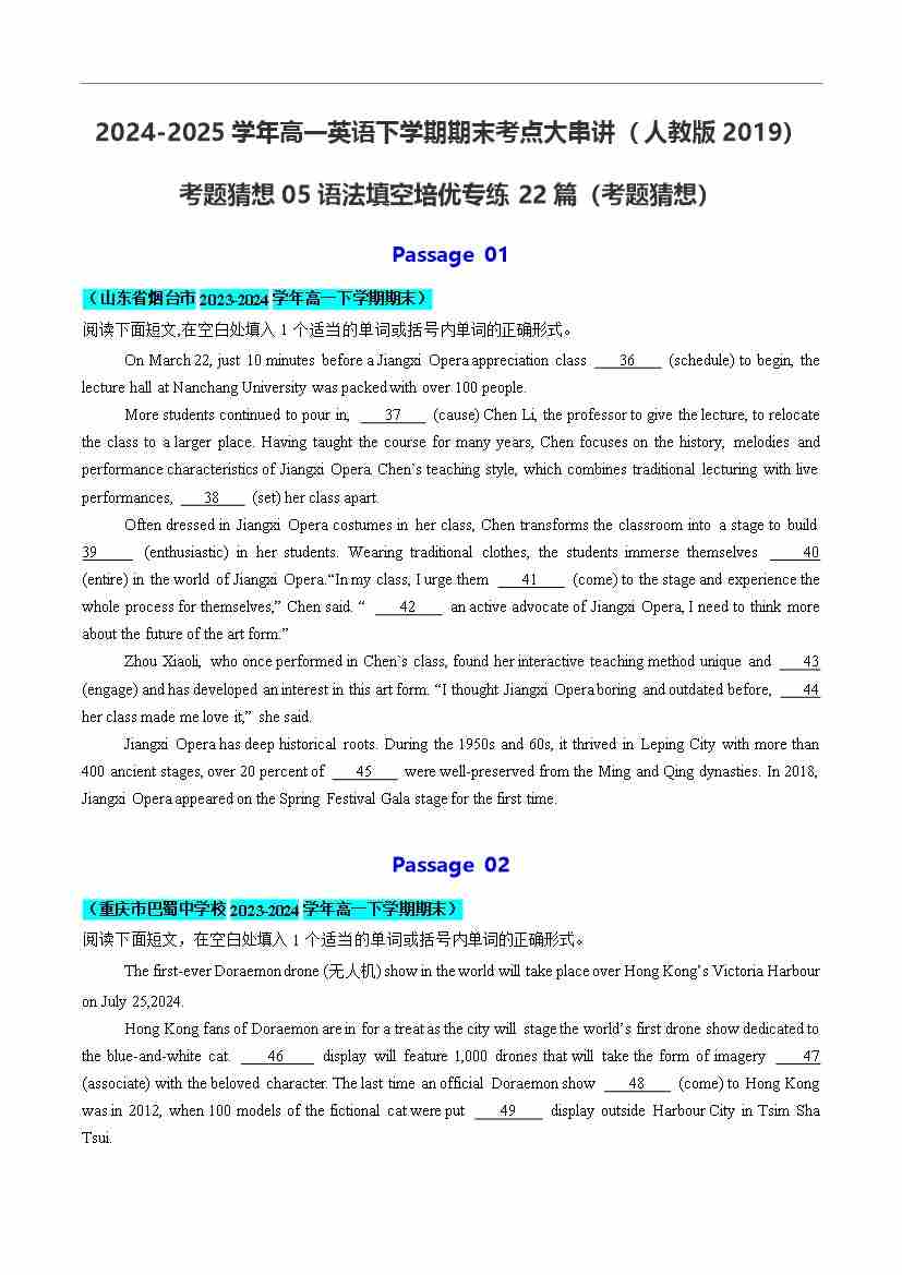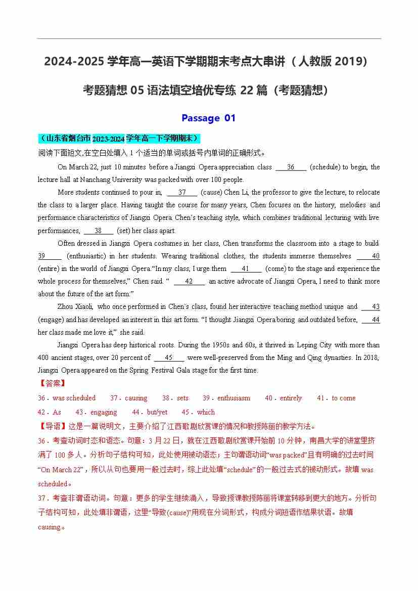 考题猜想05语法填空培优专练22篇(考题猜想)-解析版