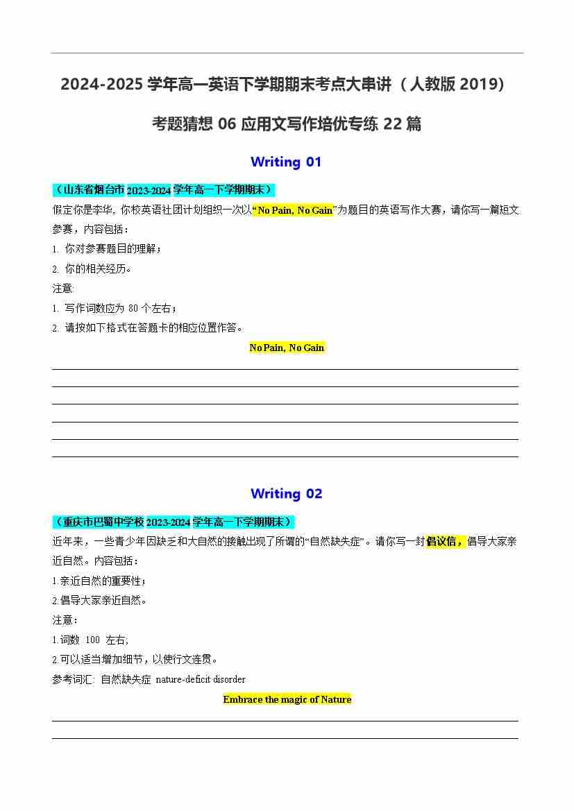 考题猜想06应用文写作培优专练22篇(考题猜想) - 解析版
