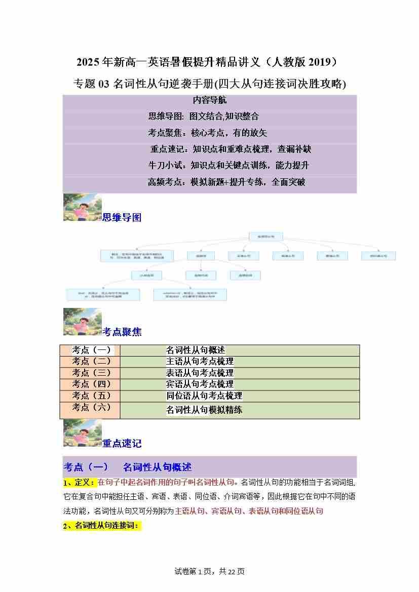专题03名词性从句逆袭手册(四大从句连接词决胜攻略)-【暑假自学课】2025年新高一英语暑假提升精品讲义(人教版2019)-解析版