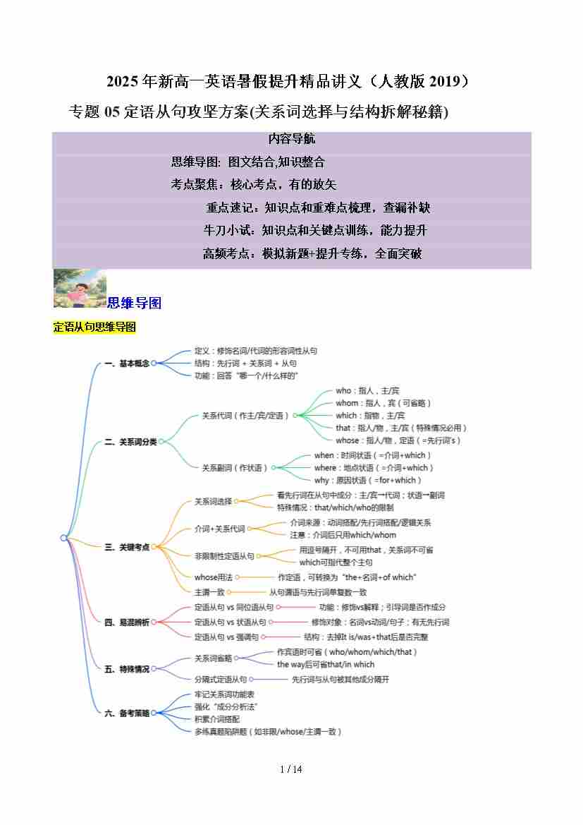 专题05定语从句攻坚方案(关系词选择与结构拆解秘籍)-【暑假自学课】2025年新高一英语暑假提升精品讲义(人教版2019)-原卷版