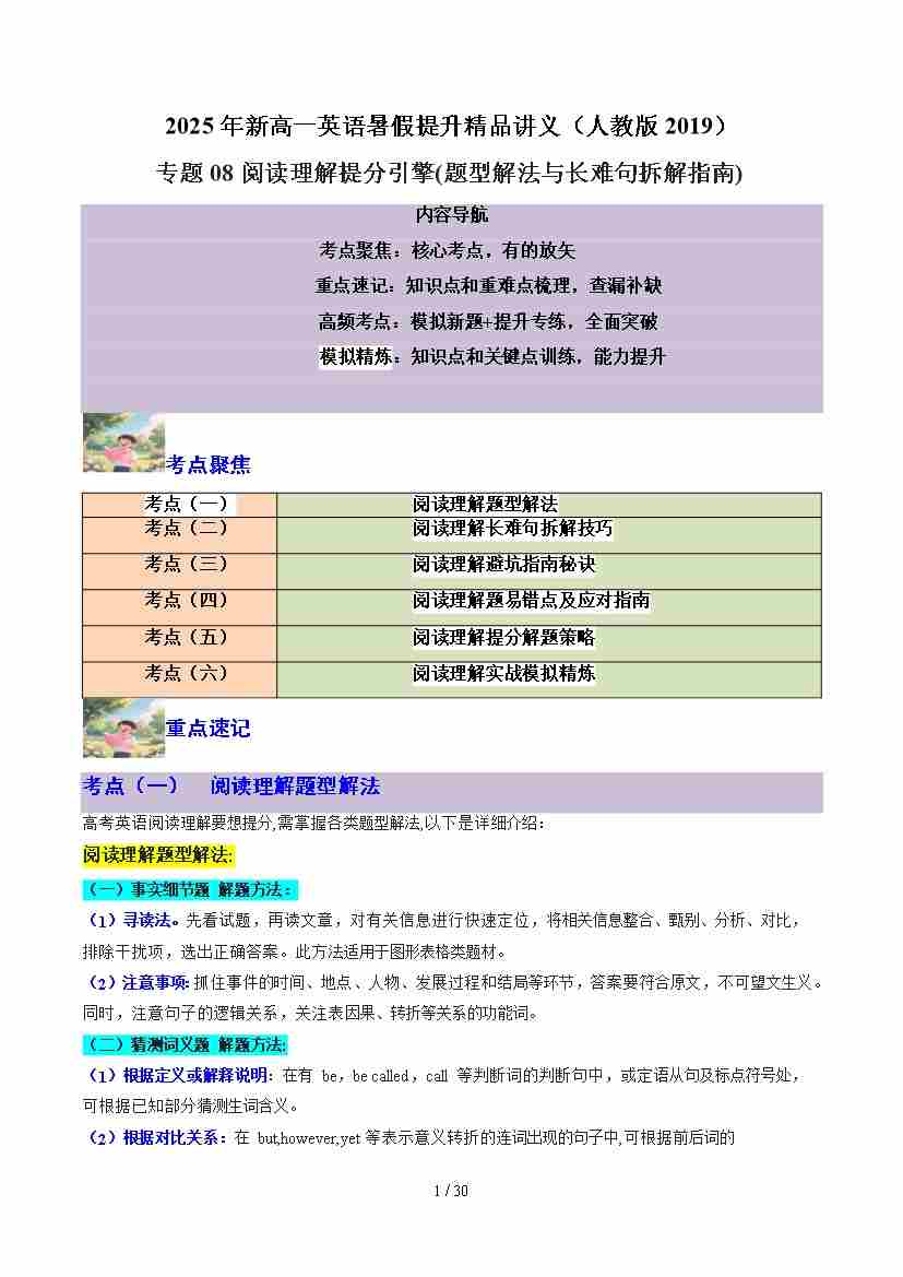 专题08阅读理解提分引擎(题型解法与长难句拆解指南)-【暑假自学课】2025年新高一英语暑假提升精品讲义(人教版2019)-解析版
