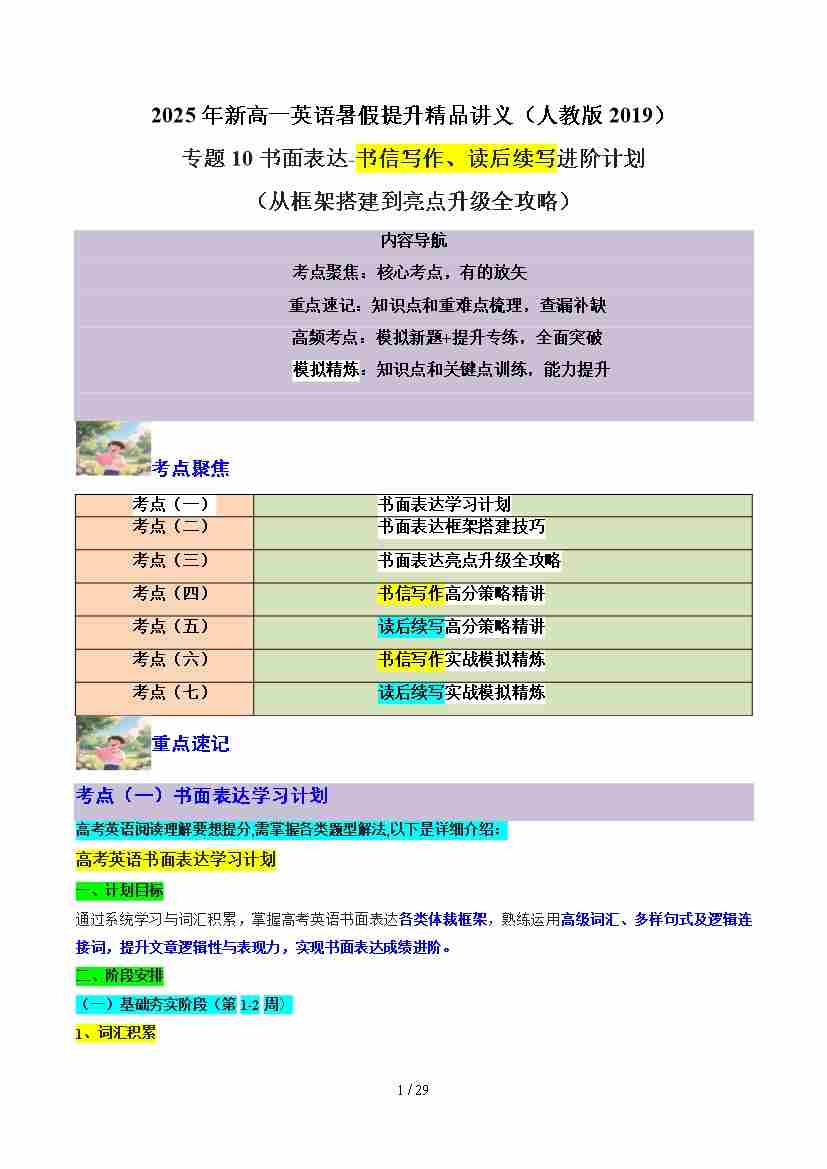专题10书面表达-书信写作、读后续写进阶计划(从框架搭建到亮点升级全攻略)-【暑假自学课】2025年新高一英语暑假提升精品讲义(人教版2019)-解析版
