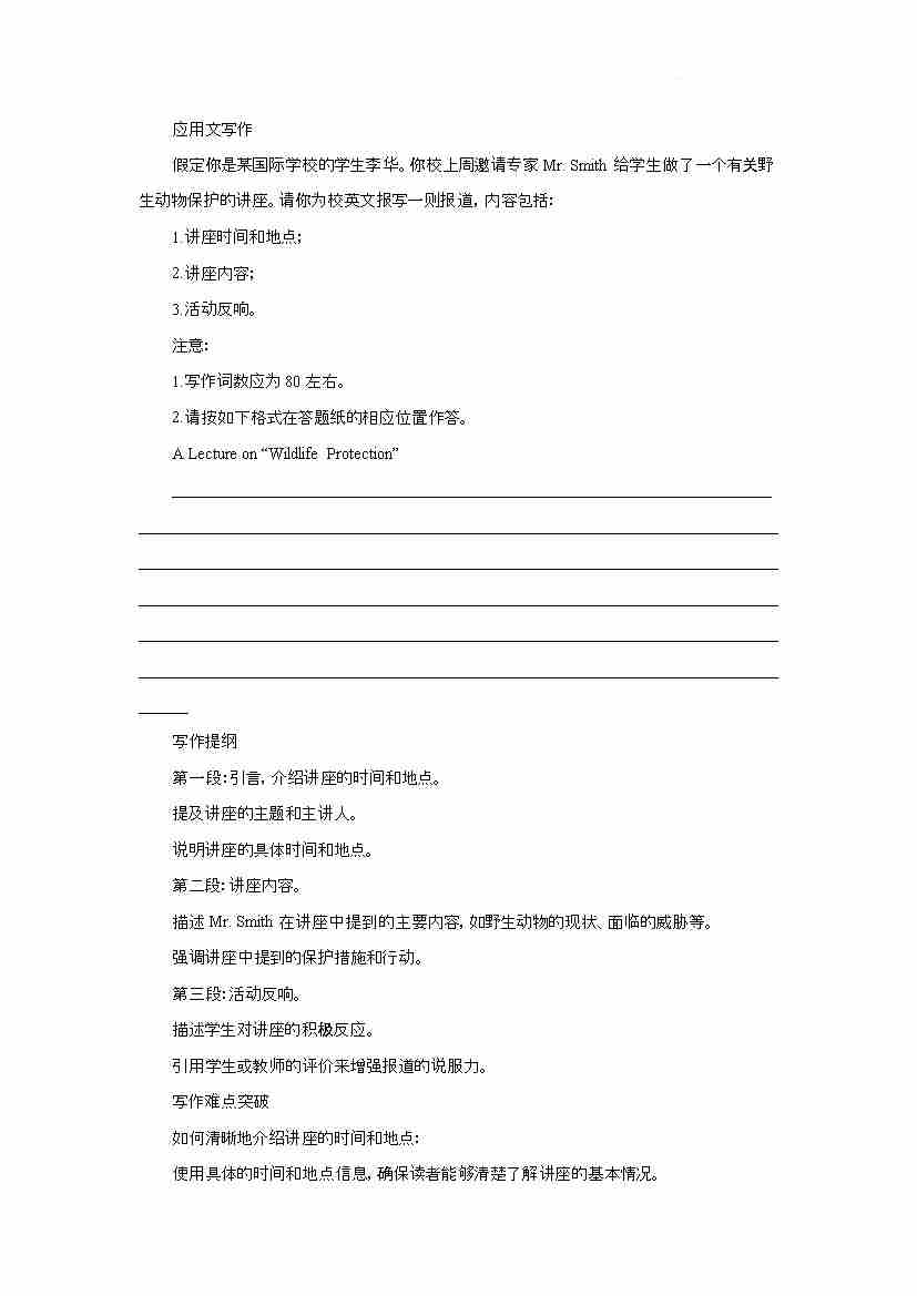 应用文写作 介绍专家Mr. Smith给学生做的一个有关野生动物保护的讲座 讲义-陕西省咸阳市高新一中2024-2025学年高一下学期3月月考英语试题