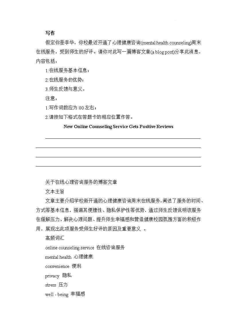 应用文写作 关于在线心理咨询服务的博客文章 讲义-山东省临沂市兰陵县2024-2025学年高一下学期期中考试英语试题