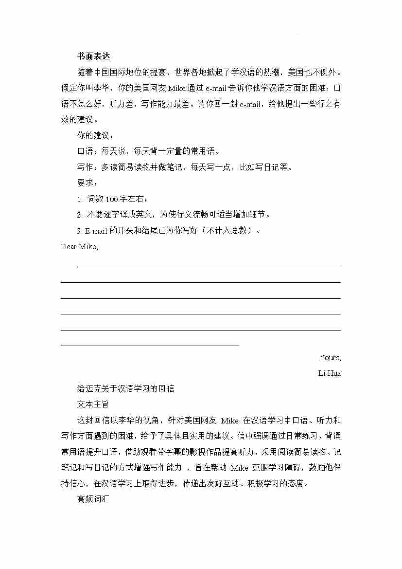 应用文写作 给迈克关于汉语学习的回信 讲义-江苏省盐城市五校联考2024-2025学年高一下学期4月期中考试英语试题