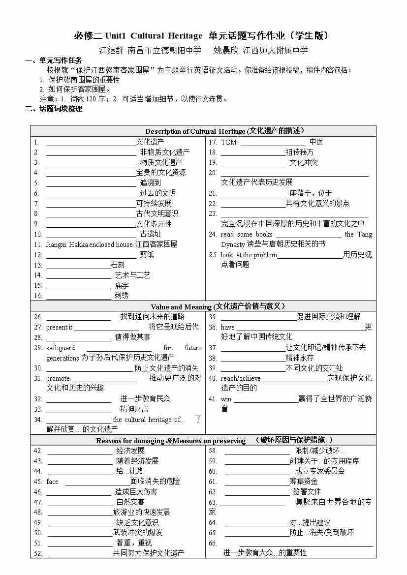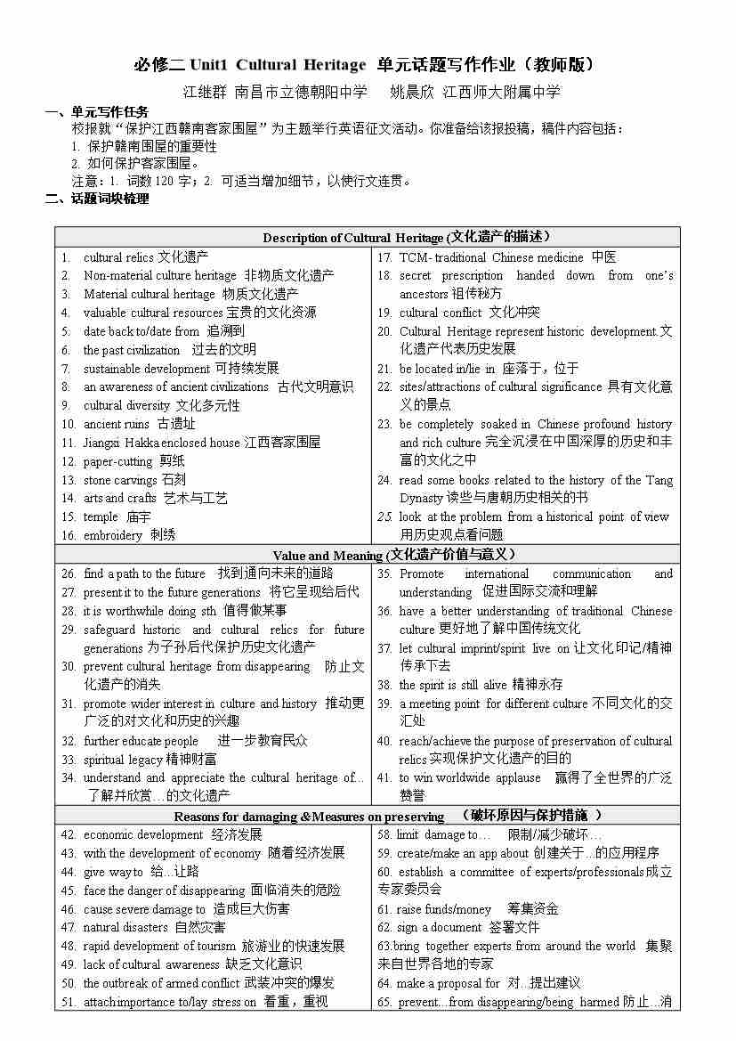 必修二Unit2 Wildlife protection单元写作作业设计一稿(教师版)
