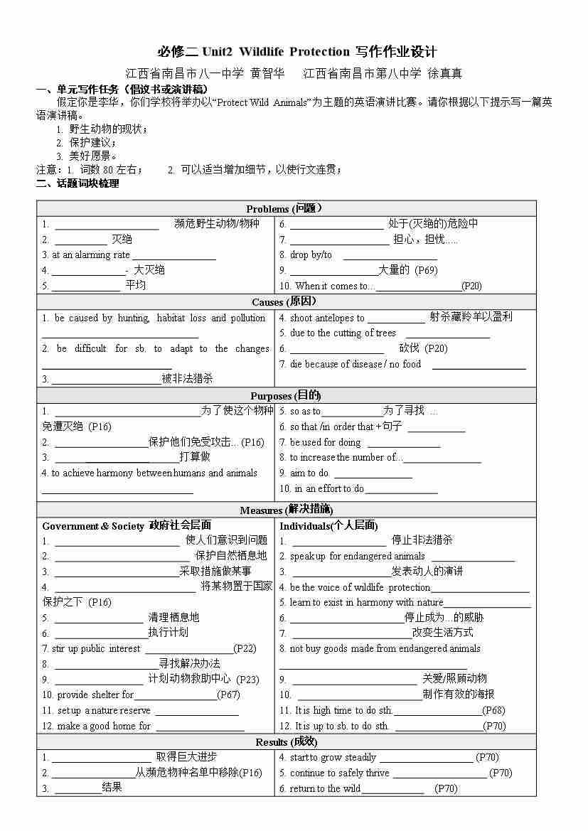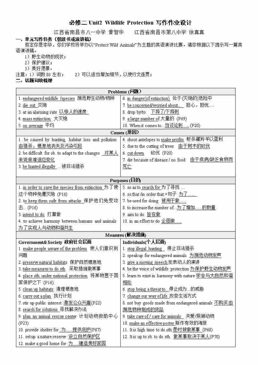 必修二Unit2 Wildlife protection单元写作作业设计一稿(学生版)
