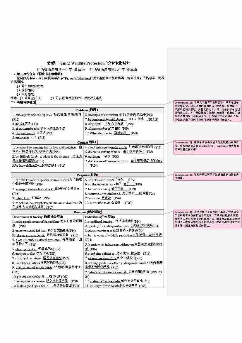 必修二Unit2 Wildlife protection单元写作作业设计一稿(教师版加批注)